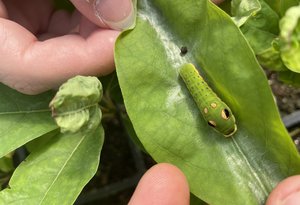 Photo: Spicebush swallowtail larvae (Papilio troilus) on host plant spicebush (Lindera benzoin), Alexis Doshas © NativePlantTrust